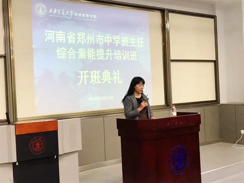 全体培训人员在中二楼1200报告厅举行了简朴而热烈的开班仪式,仪式由此次培训班班主任陈璇姝老师主持。西安交大继续教育学院副院长陈灵做了开班致辞,向大家介绍了西安交大的悠久历史和与时俱进的发展理念,并预祝班主任们能学有所获。
