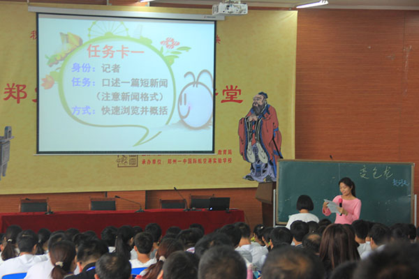 首先,是校长汇报。上午九点,学校二楼报告厅高朋满座,沈淑芳校长以《立足港区,面向未来,彰显生命色彩》为题作精彩发言。沈校长在文章中首先回顾学校从2010年建校至今筚路蓝缕的岁月,接着谈了五年间取得的成绩,主要有以下几个方面:一、用文化滋养学校。站在郑州一中这个巨人的肩膀上,从文化的高度承担起郑州一中的责任和荣誉,初步构建学校文化体系:1、“海阔天高,鱼跃鸟飞”的教育理想。2、“培养自主精神”的办学理念。3、“爱与善”的教育情怀。二、用课程成就学生。根据学校的特色、学生的需要和老师的资源优势,我们开设了如下校本课程:社会精英进课堂、创新升旗仪式、“我要做文明生”活动、经典诵读、学生社团、军训课程、小升初衔接课程、DIY课堂、开放“一馆三室”。三:于课堂上实现教育理想。从教育教学的根本出发,着力打造好主体课堂、自习课堂和卓越课堂。四:于课程建设和课堂改革中促进教师成长。对教师的培养和提升是课程建设和课堂改革的必然,在这方面我们做了许多工作:1、以制度培养人。以教室日志、教学恳谈、学生评教、推门听课和质量分析五项教学管理机制,营造一个百舸争流、适度竞争和充分合作的团队氛围,让老师们不用扬鞭自奋蹄。2、教研组建设:让教研带动教学,让学习和研究成为一种习惯。 3、新进教师的培养:入职后,人人过三关即参加“青年教师汇报课——成长检查课——教坛新秀评选课”,营造一个充实、向上、竞争、加压的驱动氛围。学校在短短五年间取得的成绩得到在座老师的一致认可和好评。