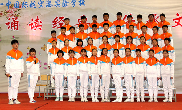 中华经典是古人留给我们的一杯美酒,香醇而清洌;它是我国传统文化的精髓,滋养着我们一代又一代的中国人。为了让学生亲近经典,努力营造书香校园,3月27日,郑州一中国际航空港实验学校师生齐聚在风雨篮球场“诵读经典,传承文化”,特邀嘉宾中州大学蒋明明教授及学校刘点点校长、教务处曹爱英主任、语文教研组长殷方方老师、九年级年级主任李丹丹老师、露荷文学社指导老师孙英担任此次诵读比赛评委。